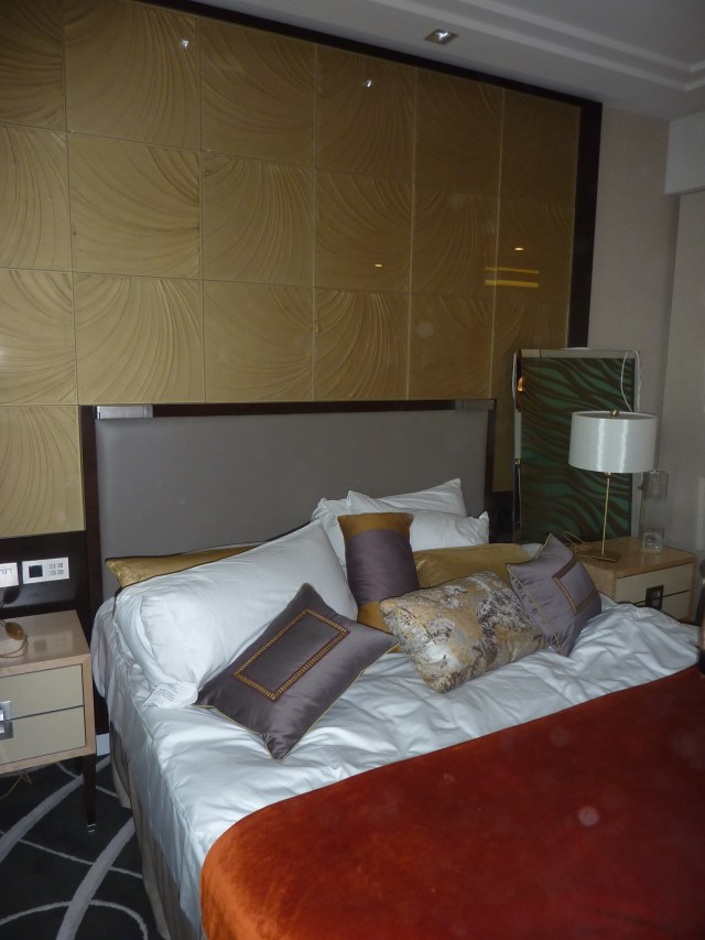 Abschliessend kann ich noch das Musterzimmer preisgeben. 232 Zimmer und Suiten sind vorgesehen. Ein erster Eindruck (sympatischerweise mit einer leeren Moet-Chandon-Flasche garniert) hier: